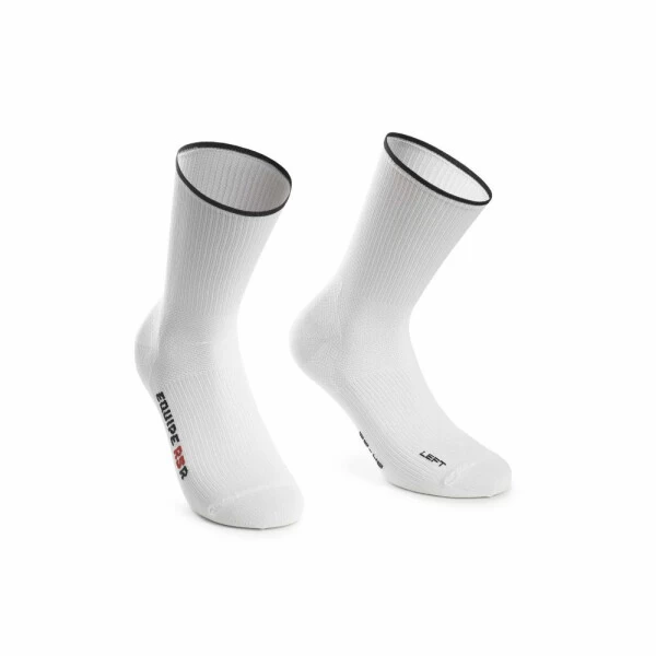 Dafür hat Assos InfraRed-Garn verwendet, welches dank seines hohen Elastomeranteils durchweg für Kompression sorgt und zusammen mit Lycra entlang des Fußes, Knöchels und Unterschenkels einen festen, stützenden Halt bietet. Speziell für das Fußgewölbe wurde ein Ripp-Band entwickelt, das es umwickelt und so noch mehr Halt sowie erhöhte Atmungsaktivität bietet. Das kontrastierende Band entlang des Fußrückens sorgt für ein sauberes Gesamtbild.