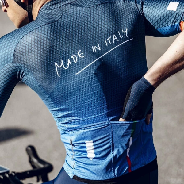 Nach sorgfältigen Studien, sowohl in den Bereichen Body Mapping, als auch der Aerodynamik, wurde unser neues Raglan-Trikot unter Verwendung einer Kombination verschiedener, strategisch platzierter Materialien entworfen. Das Resultat ist ein neuer Look, der alle Vorteile unserer akribischen Forschung zeigt. Die Ärmel bestehen aus einem leicht gerippten Material, während die Vorderseite aus einem mikroperforierten Stoff konstruiert wurde, auf der Rückseite ist ein Wabennetz integriert. Diese innovative Kombination macht das Jersey R2 sehr leicht (110gr) und atmungsaktiv.
